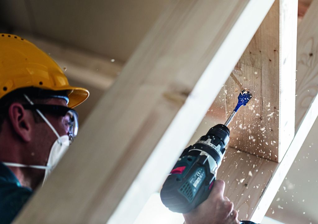 -Perfekt för att göra snabba hål i barrträ, spån- och spånskivor, till exempel för borrning av enstaka stift till kabeldragning eller plugginstallation i räcken. Lätt att använda i trånga utrymmen.