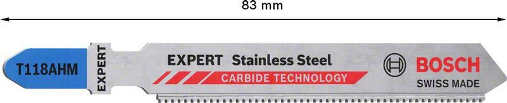 Lång livslängd för sågning i rostfri stålplåt - Expert 'Stainless Steel' är optimerad för de tuffaste metallerna och har en tanddelning som passar tjockleken på plåten du arbetar i. Bladets extrema hållbarhet garanteras av Bosch Carbide Technology – en tandremsa av hårdmetall lasersvetsas på kroppen. Det skär extremt effektivt i de tuffaste metallplåtarna och erbjuder maximal livslängd. Passar alla sticksågar med T-skaft.