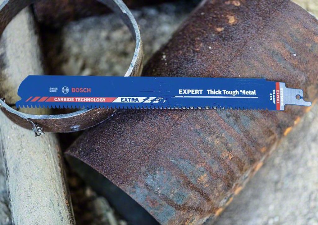 Lång livslängd för sågning av grov, tuff metall - Extrem hållbarhet är inbyggd i bladet med Bosch Carbide Technology. Tänder i hårdmetall svetsas på en extra robust och bred kropp i tjockt stål – perfekt för raka snitt och hållbarhet. Yrkeshantverkare som inte har använt Boschs hårdmetallblad tidigare blir förvånade över tåligheten hos Bosch Expert ‘Thick Tough Metal’ tigersågblad. Passar alla tigersågar med S-skaft.