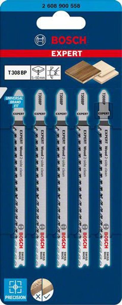 Bosch Expert ‘Wood 2-side clean’ T 308 BP sticksågblad, 5 st