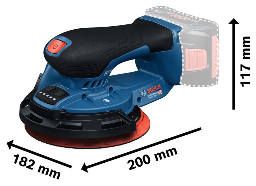 Bosch GEX 18V-150-3 Professional är en högpresterande oscillerande slipmaskin som kombinerar kraft och precision för en optimal slipupplevelse. Med sin kompakta och balanserade design ger den utmärkt kontroll, även vid längre arbetspass. Greppytan är nära arbetsstycket, vilket ger bättre ergonomi och minskar trötthet.