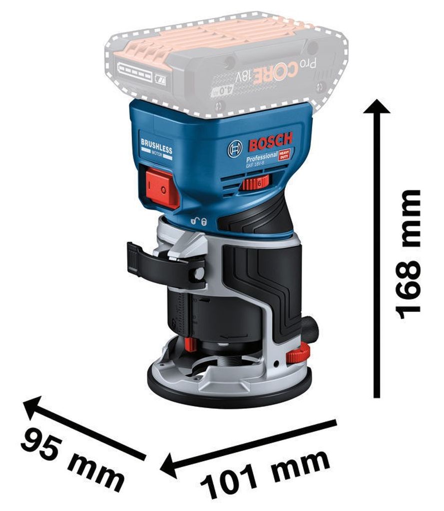 GKF 18V-8 är kompatibel med Bosch Professional 18V-systemet och har ett brett utbud av tillbehör för både kantfräsning och ytfräsning. Oavsett om du arbetar med detaljarbeten eller tyngre fräsningar, är detta verktyg en perfekt lösning för dig som kräver flexibilitet, kraft och precision i ett batteridrivet format.