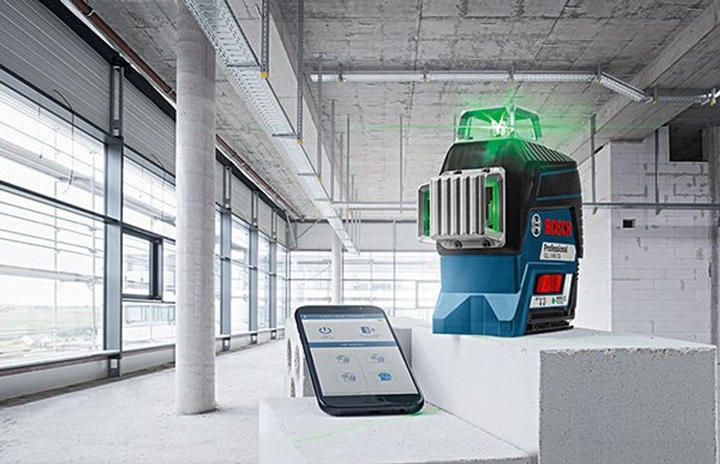 Bosch GLL 3-80 CG M/BM/12V kors-linjelaser ger 3x360 graders avancerad laserprestanda med Bluetooth-funktion för fjärrstyrning och exakt resultat.