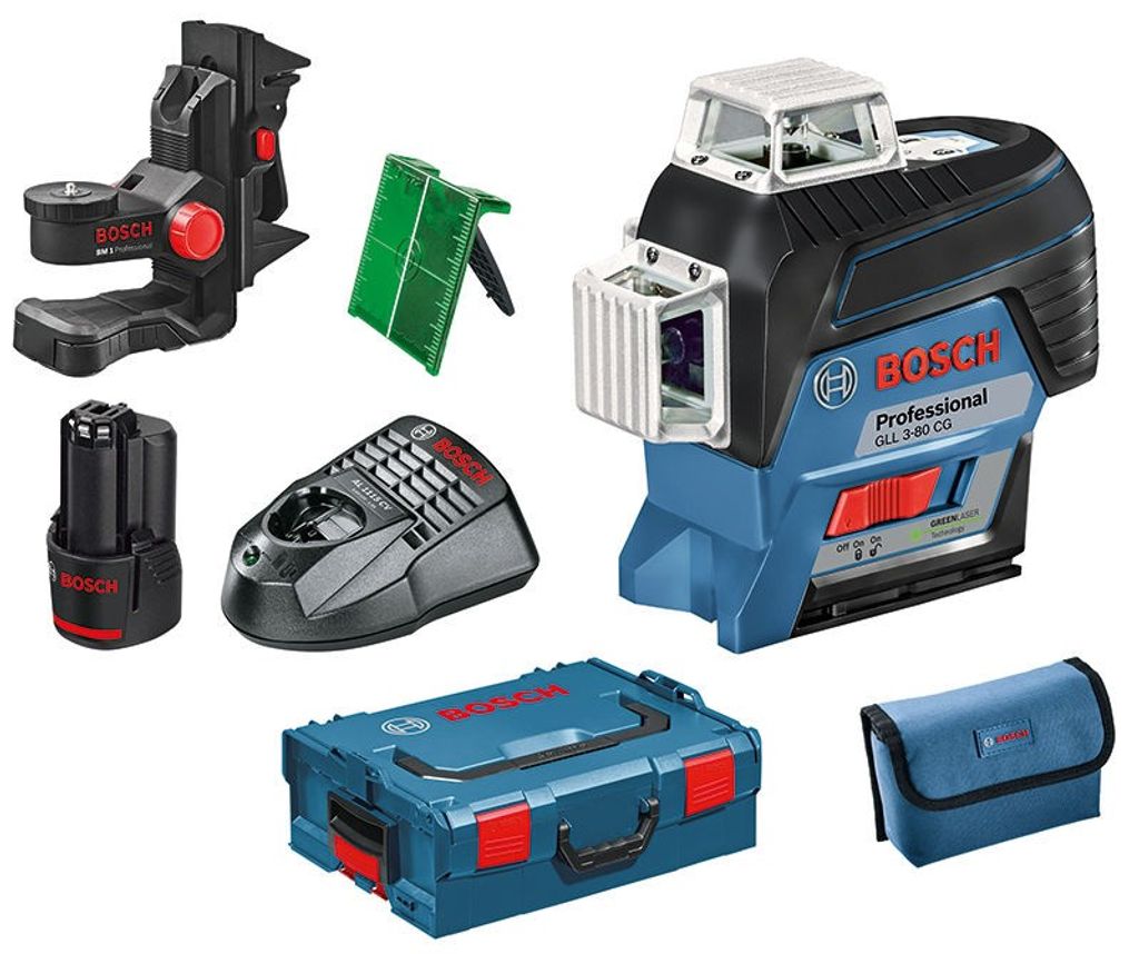 Bosch GLL 3-80 CG är en Kors- & Linjelaser som avger tydliga gröna laserlinjer i 360 grader i tre riktiningar. En grön laserlinje syns upp till 4 gånger bättre än en röd laserstråle, så med GLL 3-80 CG får du helt enkelt en riktigt bra korslaser med tydliga och klara linjer. GLL 3-80 CG går att koppla upp och styra med din android eller iphone då den är utrustad med Bluetooth. Bosch GLL 3-80 CG levereras komplett i L-boxx förvaringsväska tillsammans med laddare, 1st 12V 2,0ah batteri, lasermåltavla, Universalfäste BM1 samt en tygförvaringsväska till lasern.