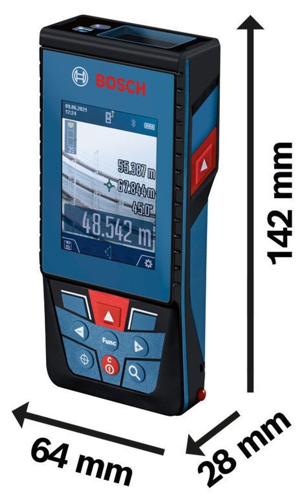 Den stora IPS-färgskärmen erbjuder hög kontrast och enkel avläsning, även i starkt solljus. Tack vare Bluetooth 4.2 Low Energy kan mätdata överföras direkt till en smartphone eller surfplatta för smidig dokumentation i Bosch MeasureOn-appen.