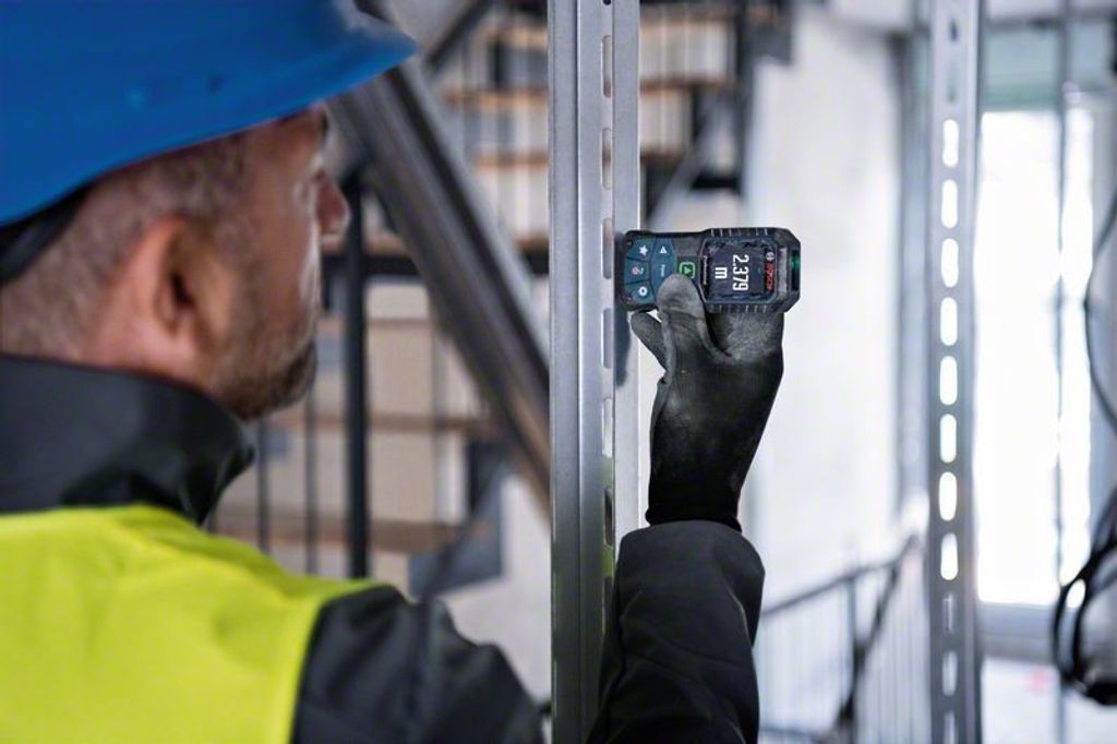 Bosch GLM 50-25 G är en avståndsmätare med grön laser för överlägsen synlighet av lasern, för tuffa villkor på byggarbetsplatsen.