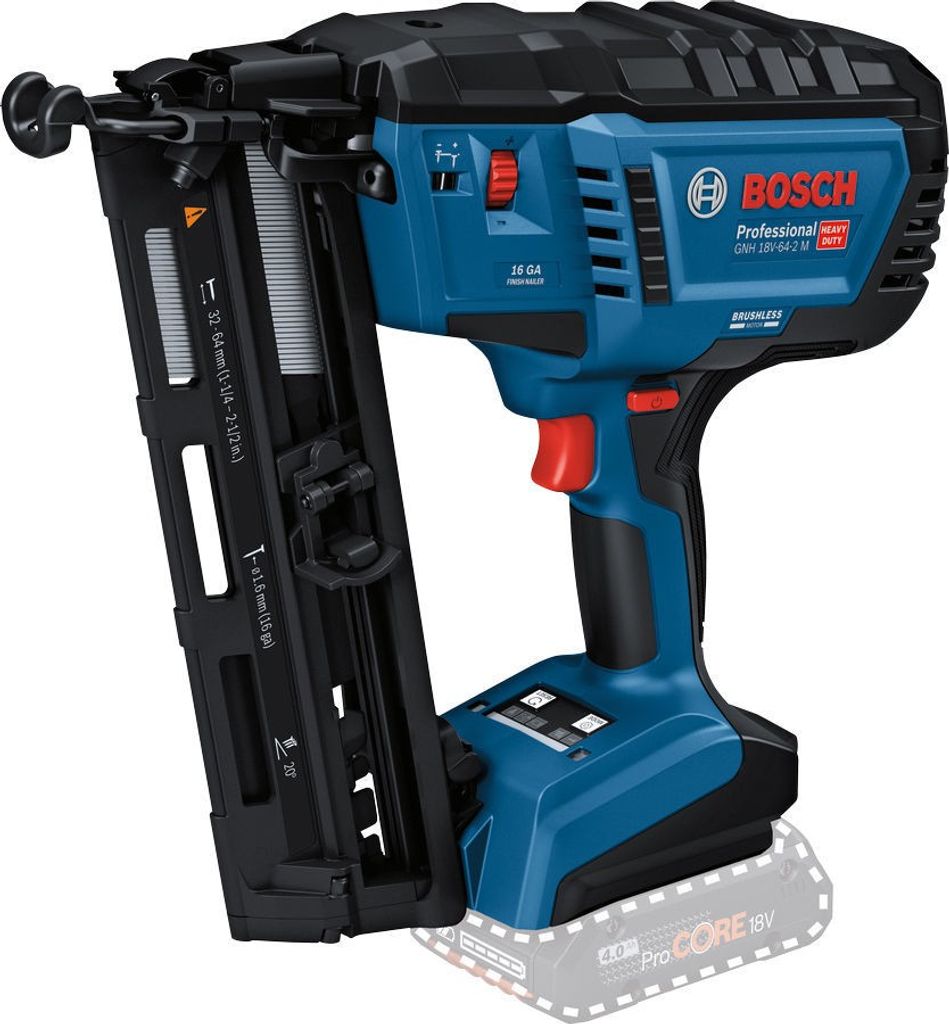 Bosch GNH 18V-64 MD är en batteridriven dyckertpistol som skjuter 1,8 mm (15 ga) dyckertspik med 34° magasinsvinkel. Den erbjuder samma kraft som tryckluftsdrivna modeller, men utan behov av kompressor, gaspatroner eller sladdar. Tack vare den borstlösa motorn och minimala rekylen är den skonsam för handlederna och ger exakt precision vid spikning.