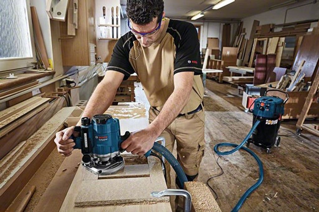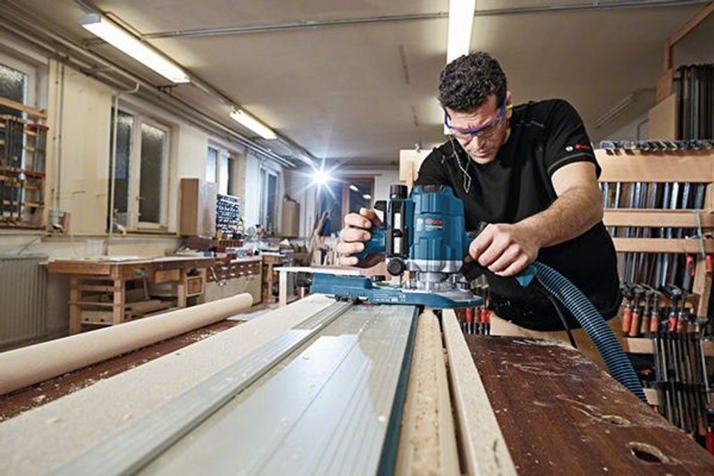 Bosch GOF 1250 CE är en smidig överhandsfräs med handtagsdesign. Överhandsfräsen har en kraftig 1250W motor med konstantelektronik