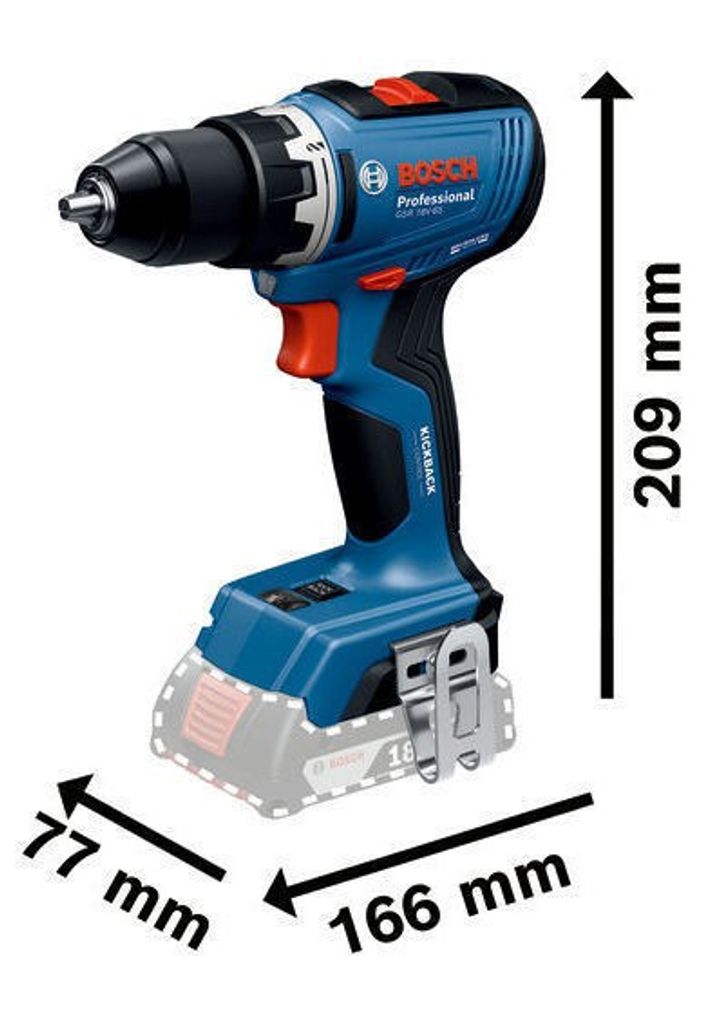 Bosch GSR 18V-65 Professional är en kompakt men kraftfull borrskruvdragare designad för att klara av krävande skruvdragning och borrning i både trä, metall och plast. Med ett högt vridmoment på 63 Nm och en hastighet på upp till 2 310 varv/min, får du en effektiv och snabb arbetsprocess. Verktygets kompakta design på endast 166 mm huvudlängd gör det enkelt att arbeta i trånga utrymmen och svåråtkomliga områden.
