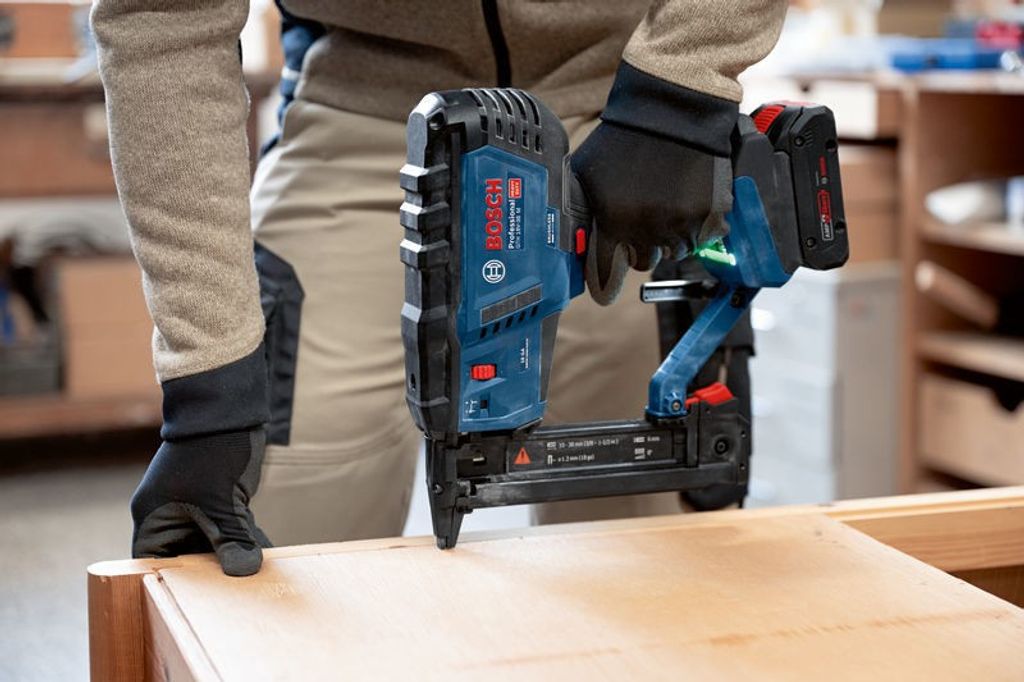 Bosch GTH 18V-38 är en batteridriven 18V klammerpistol med samma kraft som tryckluftsdrivna modeller, men utan kompressor, gaspatroner eller sladdar. Den borstlösa motorn ger låg rekyl, vilket gör den skonsam för handleder och armar. Enhandsgrepp och intuitiva inställningar möjliggör snabb och effektiv klamring.