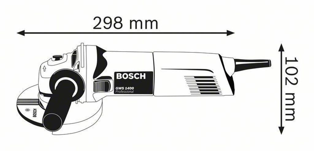 Bosch GWS1400 - kraftfull vinkelslip på 1400 watt för tuffa arbeten. Maskinen är utrustad med lågt växelhus för bra överblick över arbetsstycket, spindellåsning samt fäste för Stödhandtaget på bägge sidor.