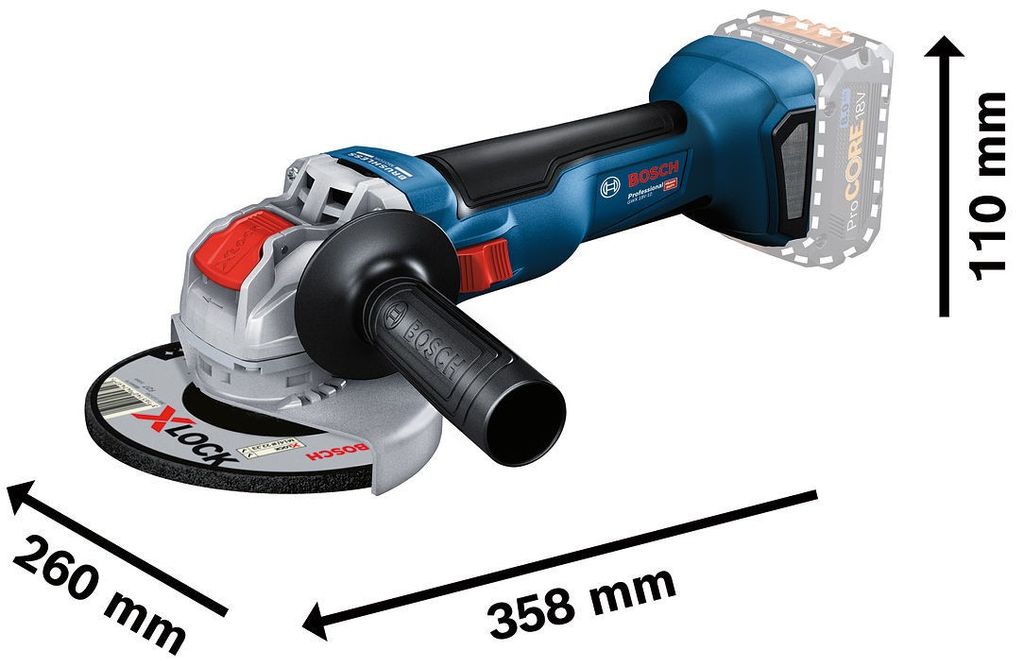 Bosch GWX 18V-10 ger en förbättrad effektnivå och verktygskontroll i 18 V-klassen – med X-LOCK. Levererar en effekt motsvarande en 1 000 W slipmaskin med kabel vare den borstlösa motorn och ProCORE18V batteriteknik
