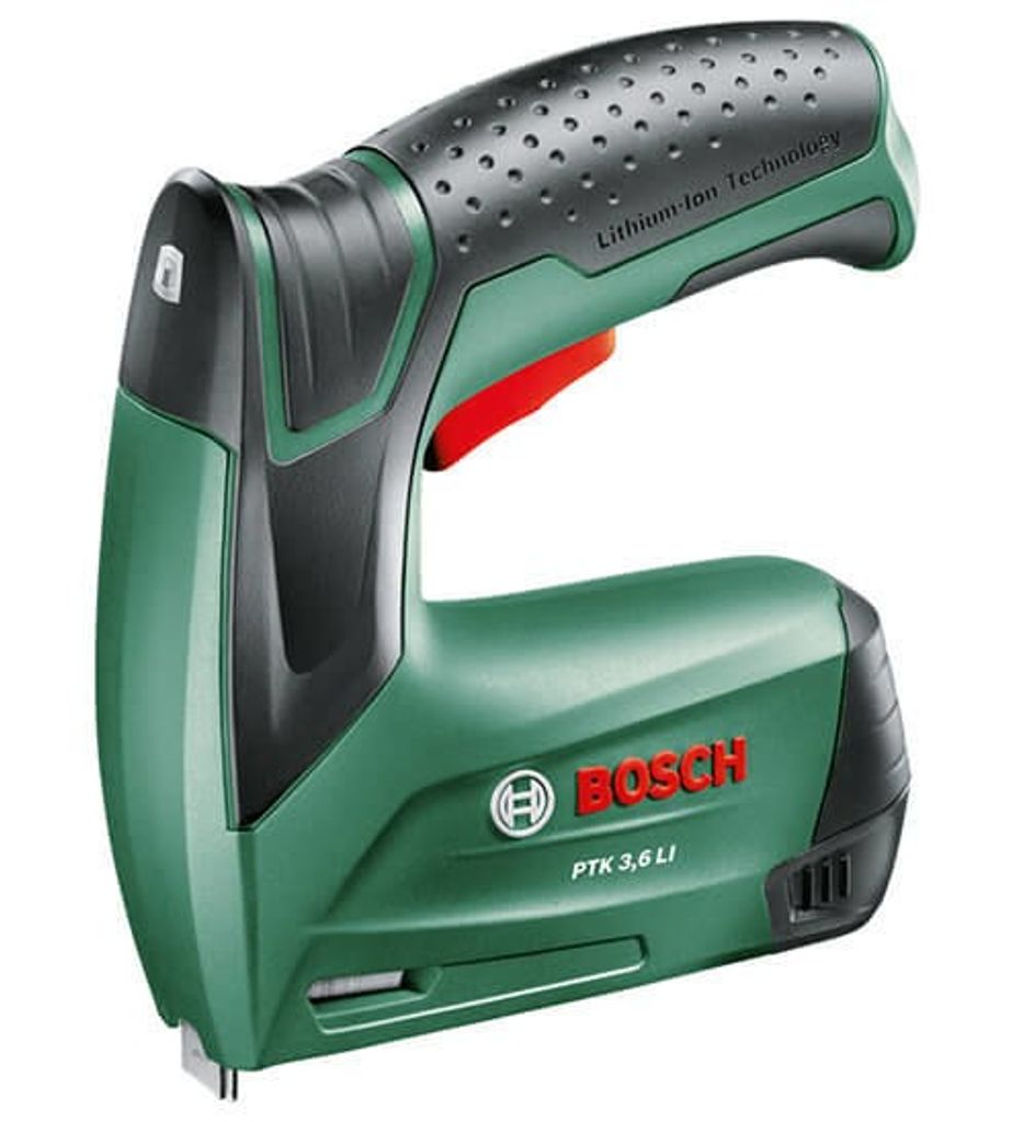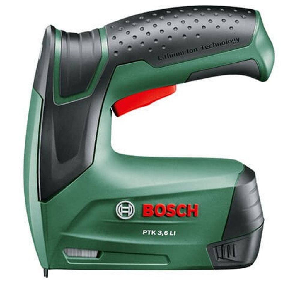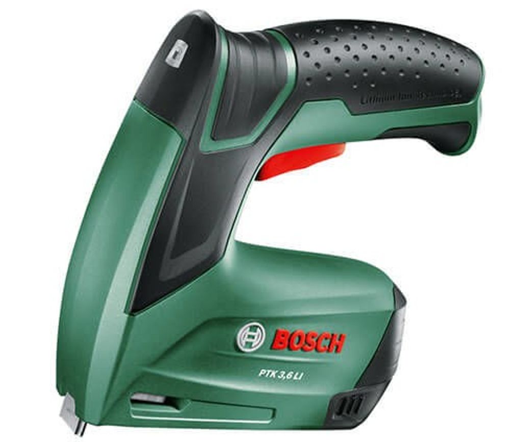 Bosch häftpistol PTK 3,6 LI - liten, praktisk, sladdlös häftpistol med lithiumjon-teknik. Laddningsnivåindikator: Inga överraskande strömavbrott eller laddningsfördröjningar.