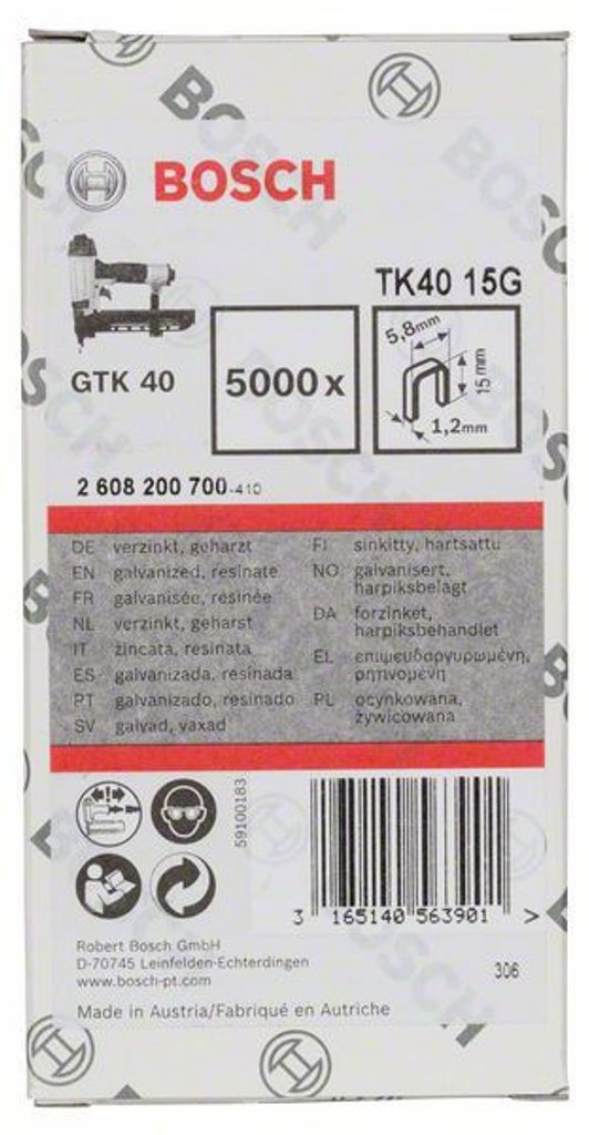 Bosch Förzinkad klammer med en bredd på 5,8mm och en tjocklek på 1,2mm. Passar till bland annat Bosch klammerpistol GTK 40.