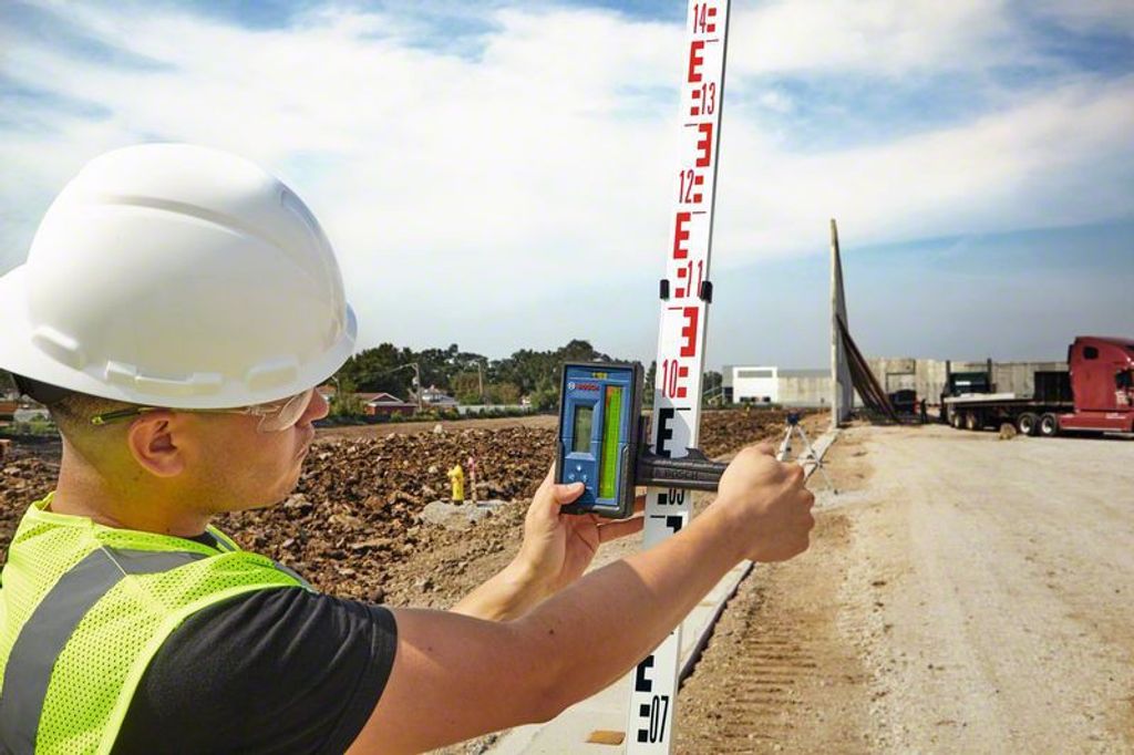 Bosch lasermottagare LR 45 är en perfekt millimetermottagare som möjliggör att du enkelt kan sätta rätt höjd med båda röda och gröna laserstrålar.