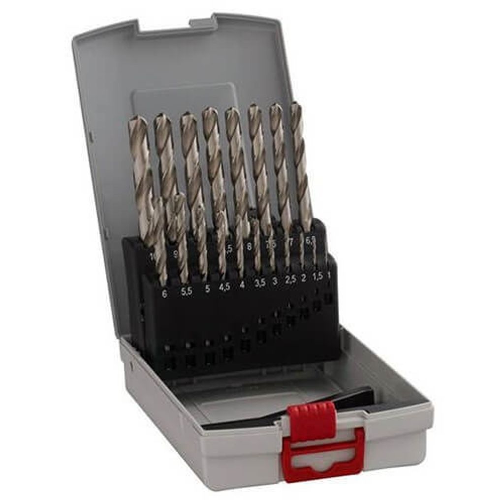 Bosch 19-delars ProBox-metallborrsats HSS-G, DIN 338, 135°. Bosch Metallborrsats med kvalitetsborr som håller, innehåller det mesta du behöver för att borra i metall och göra hål från 1-10mm.