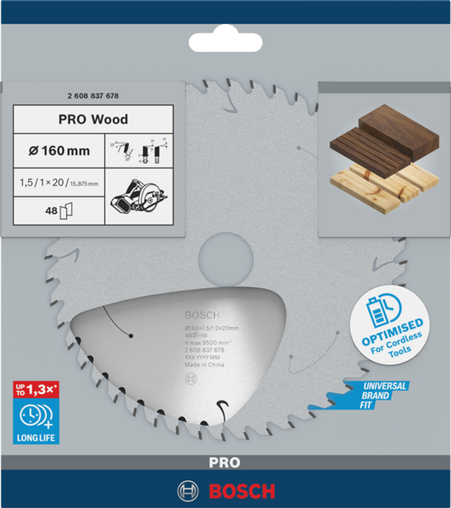 - Håller upp till 1,3 gånger längre än Bosch Eco for Wood-klingor