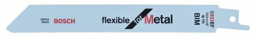 Bosch S 922 EF Flexible for Metal tigersågblad är optimerat för en mängd olika tillämpningar i metall. Dess fina tanddelning sågar material med alla vanliga tjocklekar. Bladet i BIM (bimetall) är utvecklat för att ha lång livslängd vid sågning i medelhållfast stål.
