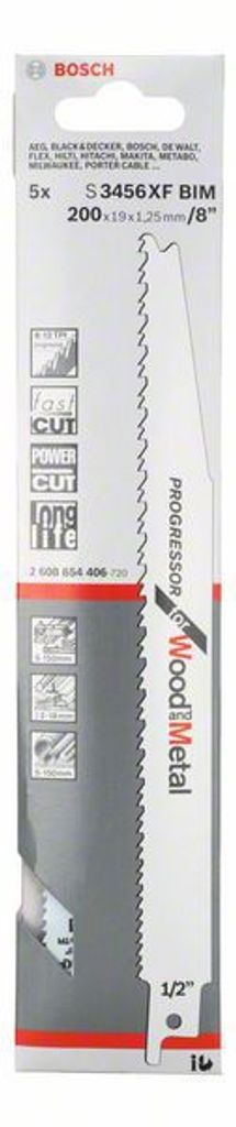 Bosch S 3456 XF Bi-Metall Rivningsblad för tigersågar som levereras i 2-Pack. Bosch tigersågblad S 3456 XF kan användas till: Trä med spik/metall, spånplattor (<150 mm), metallplåt, aluminiumprofiler (3-18 mm), GFK/epoxi (<150 mm)