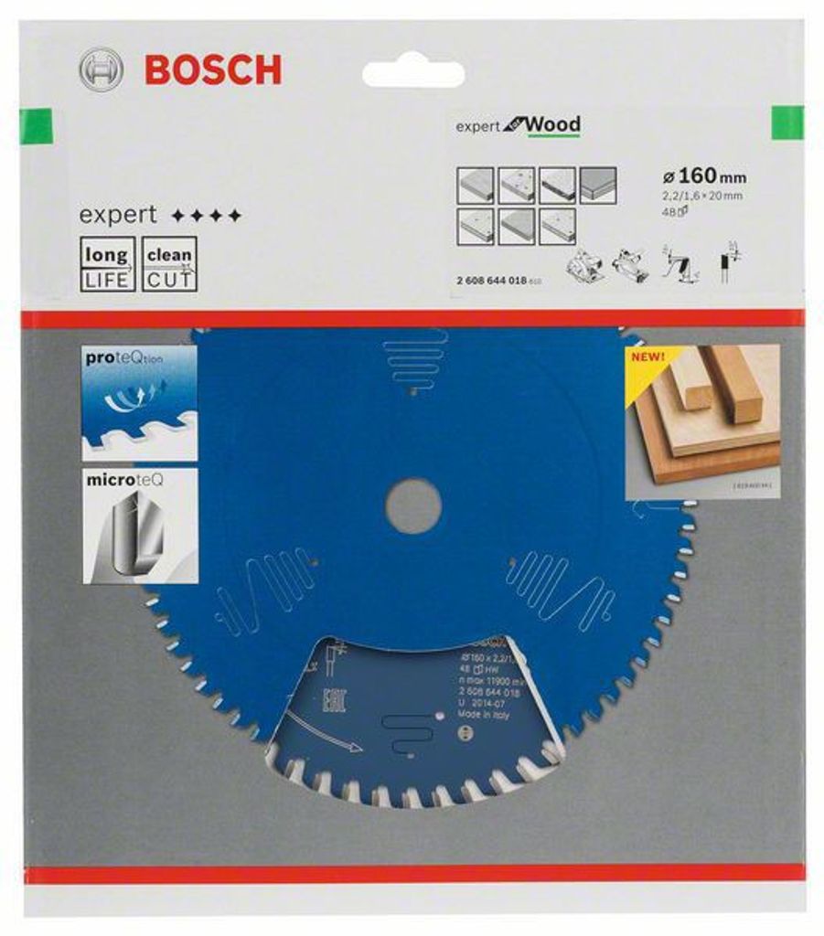 Bosch sågklinga 160 mm 48T för fina snitt i alla träslag och träbaserade material. Passar sänk och cirkelsågar med 160 mm klingdiameter och 20 mm centrumhål. Microteq tandning ger lång livslängd och skarp precision. ATB tandform och tunn kerf 2,2 mm ger ren kapning och låg belastning på maskinen