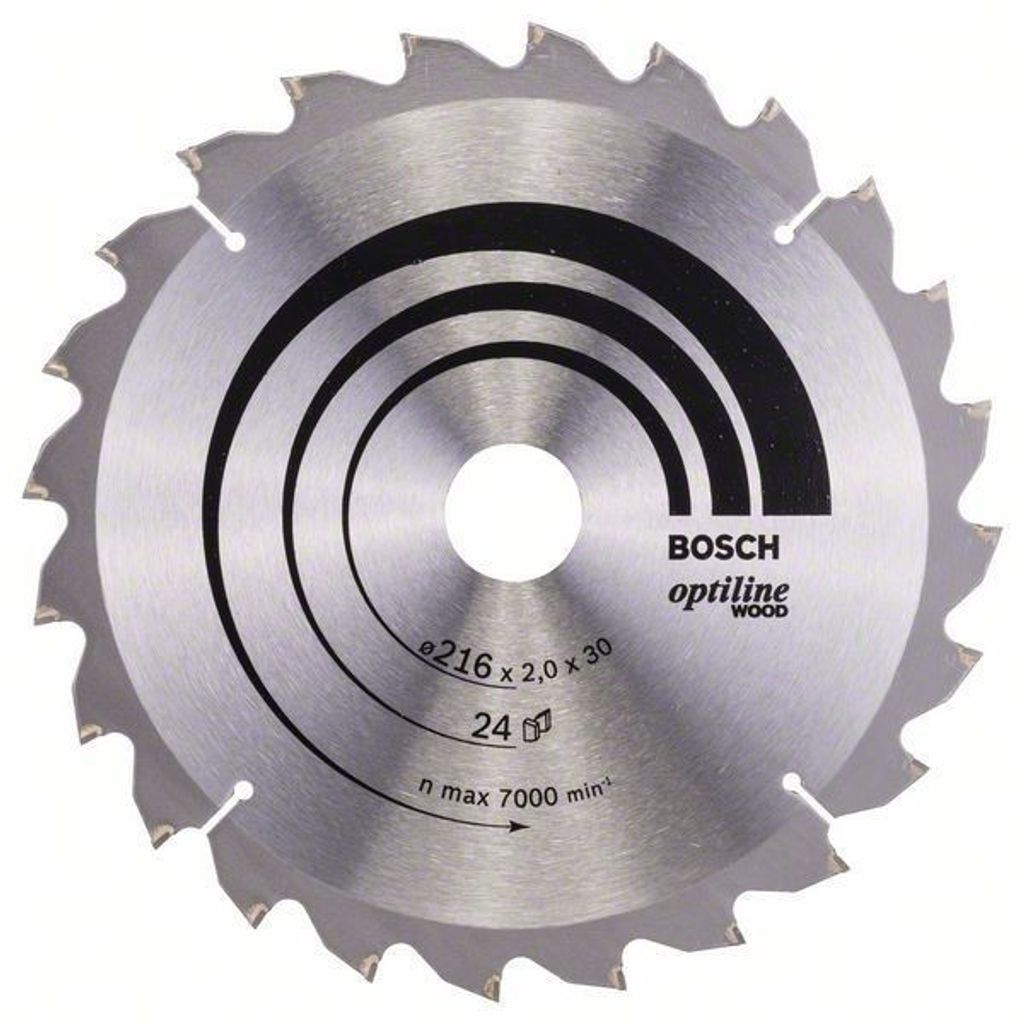 Bosch cirkelsågsklinga med en diameter på 216mm och ett centrumhål på 30mm. Universell användning.