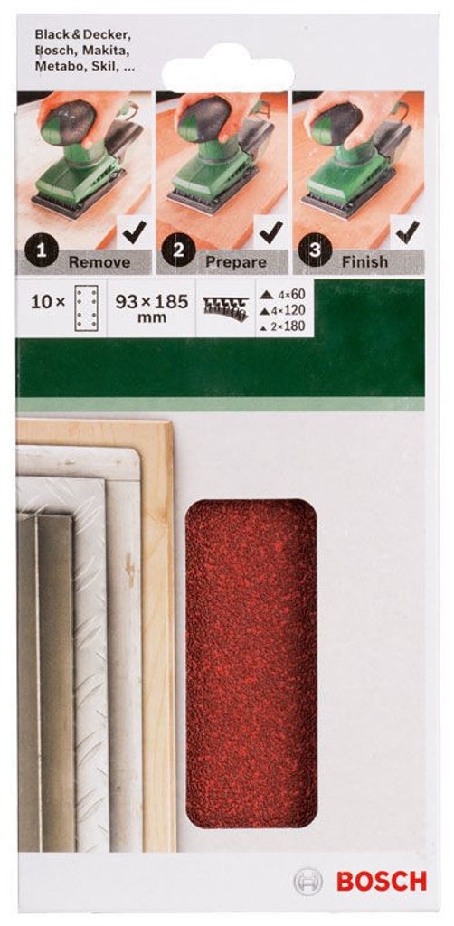 Bosch Slippapperset 60/120/180K 10st 93x185mm PSM