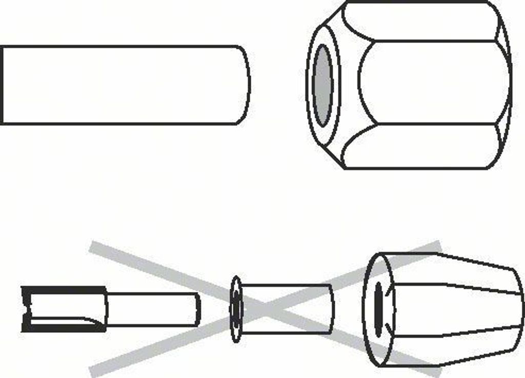 Bosch hylsan spänner fast frässtål. Korrekt hylsstorlek måste alltid användas för att förhindra risker vid drift. Använd inte på skaftmuffar.