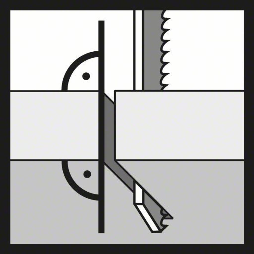 Sticksågblad för mjuka träslag, spån-, laminat-, boardskivor (5-50 mm), luckor samt köksbänkskivor (<50 mm).