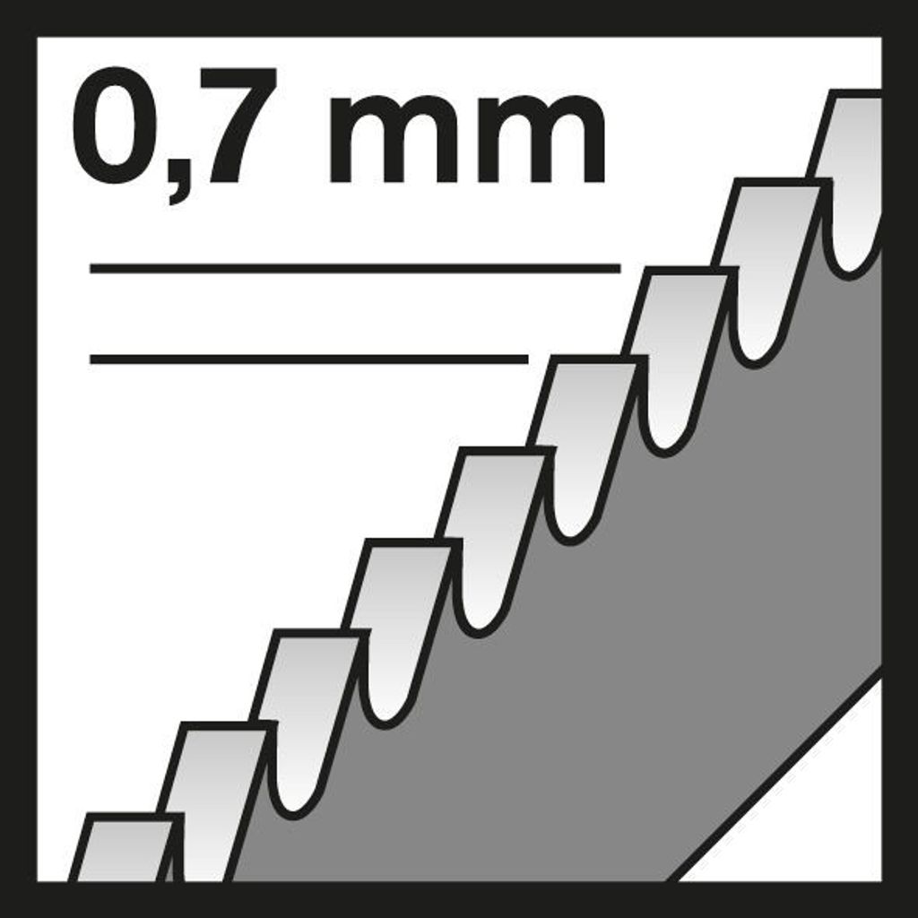 Mycket fin tanddelning (0,7 mm) möjliggör sågning i mycket tunn, massiv stålplåt med tjockleken 0,5–1,5 mm