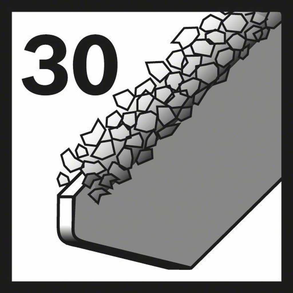 Hårdmetallbelagt sticksågsblad för keramikmaterial med kornstorlek 30. Användningsområde: Mjukt keramiskt väggkakel, GFK, gjutjärn (5-15 mm), grovsågning