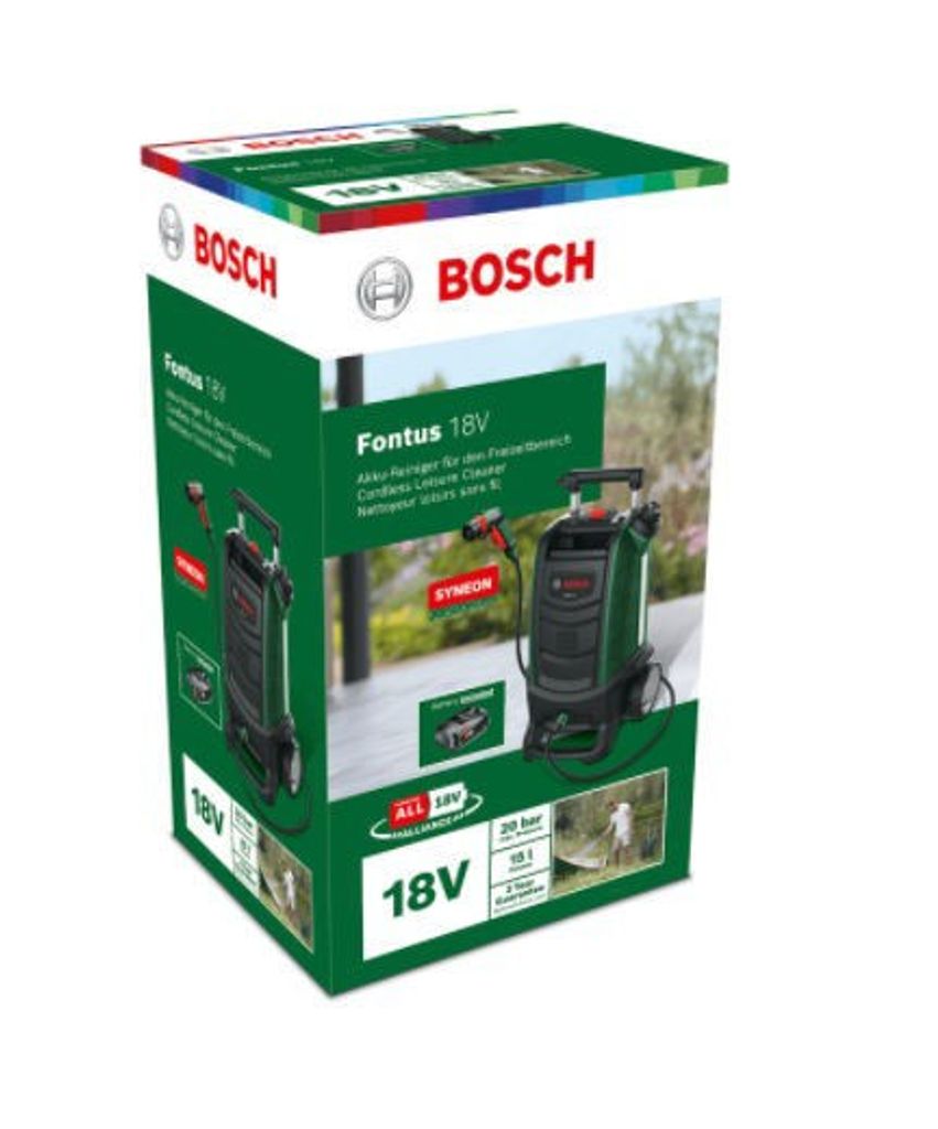 Bosch utomhustvätt Fontus 18V är idealisk för sladdlös rengöring hemma eller på resan - anslut antingen till vattennätet eller använd den inbyggda tanken på 15 l. Perfekt när du vill ta hand om dina favoritägodelar, från bilar och motorcyklar till campingutrustning och cyklar.