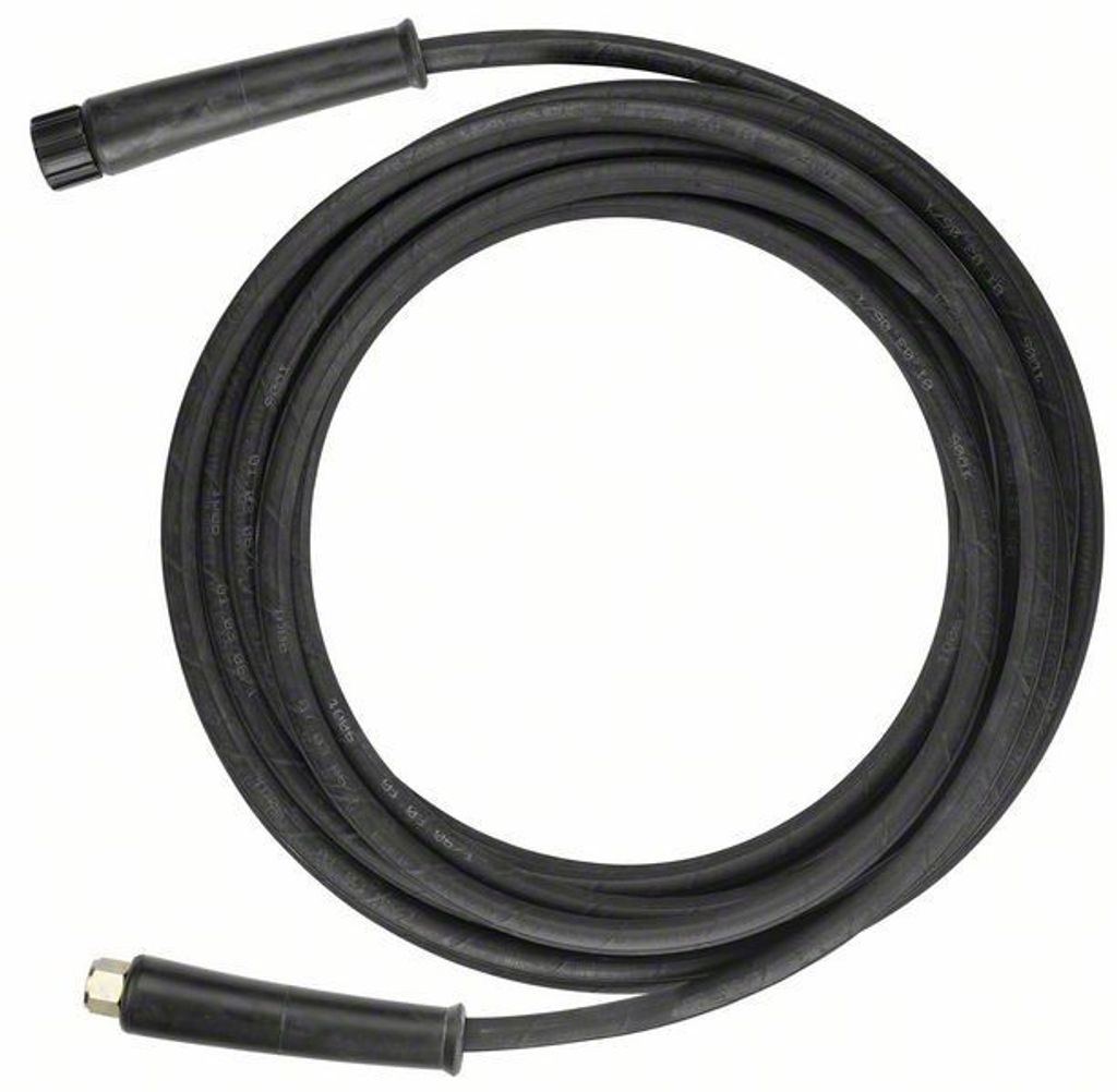 Bosch vattenslang för högtryckstvätt GHP 6-14. Den 10 m långa stålarmerade gummislangen har en mycket lång livslängd och är trycktålig upp till 600 bar.
