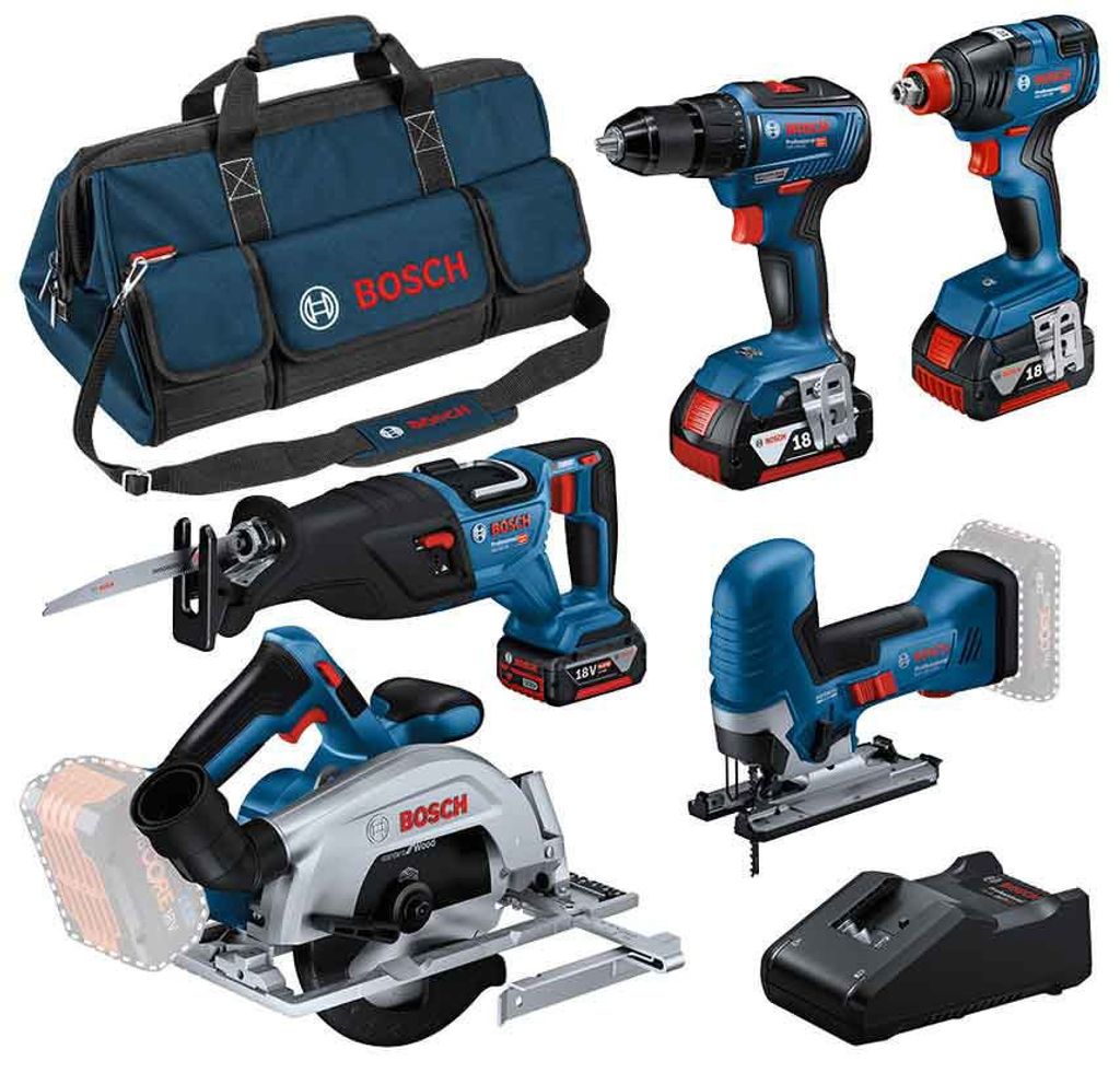 Bosch 18V verktygssats med fem kraftfulla elverktyg är den ultimata lösningen för professionella användare inom bygg, renovering och hantverk. Kitet innehåller GSR 18V-55 borrskruvdragare, GST 18V-125 S sticksåg, GKS 18V-57-2 cirkelsåg, GSA 18V-28 tigersåg och GDX 18V-200 slagskruvdragare/mutterdragare. Med tre GBA 18V 4.0Ah-batterier, GAL 18V-40 laddare och robust L-väska får du allt du behöver för att ta dig an olika arbetsuppgifter med precision, kraft och effektivitet. Ett komplett, pålitligt system för yrkesproffs.