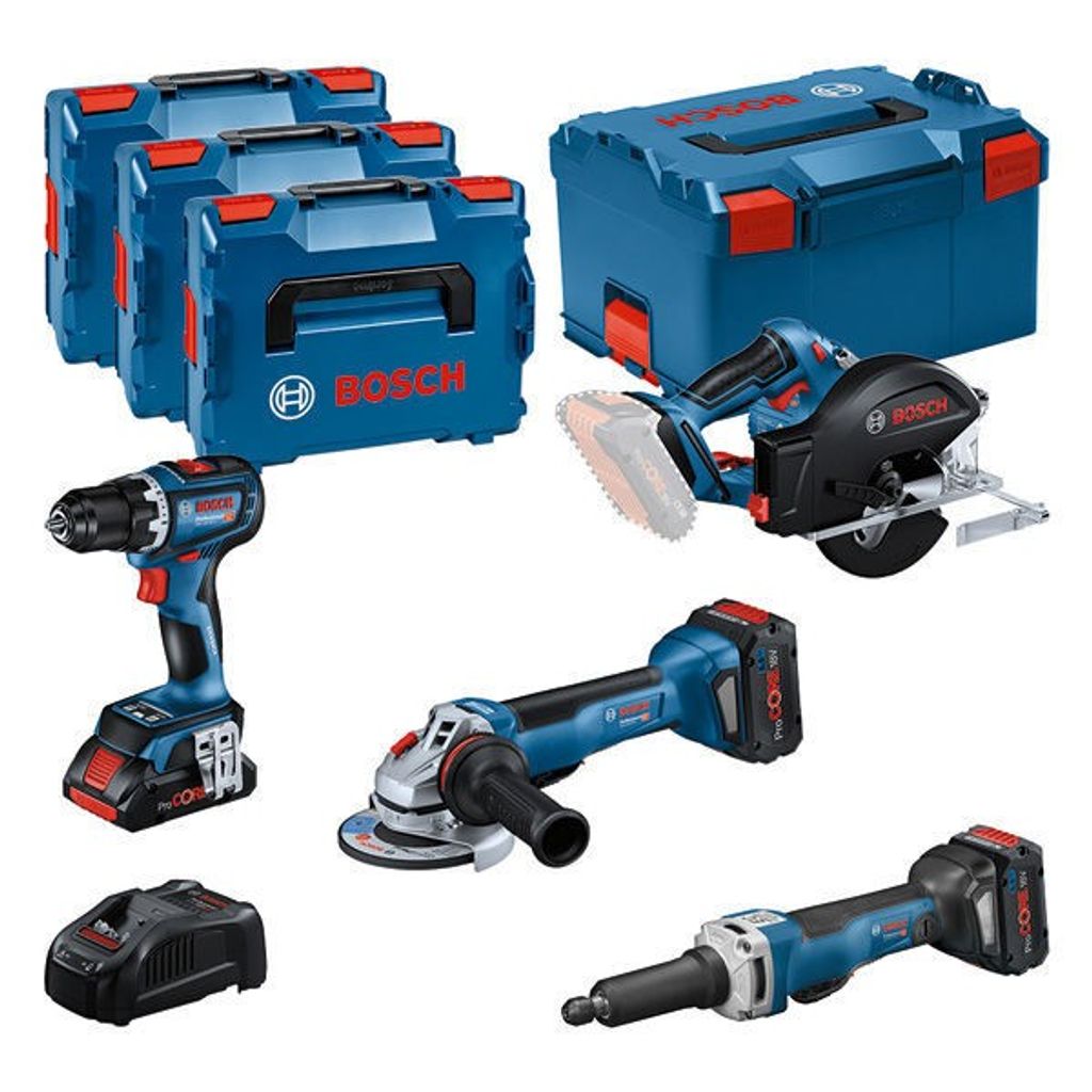 Bosch Verktygsset 18V GSR 18V-90C + GWS 18V-15 PSC + GKM 18V-50 + GGS 18V-23 PLC + 1 st. 4,0 Ah (PC) + 2 st. 5,5 Ah (PC) + GAL 1880CV