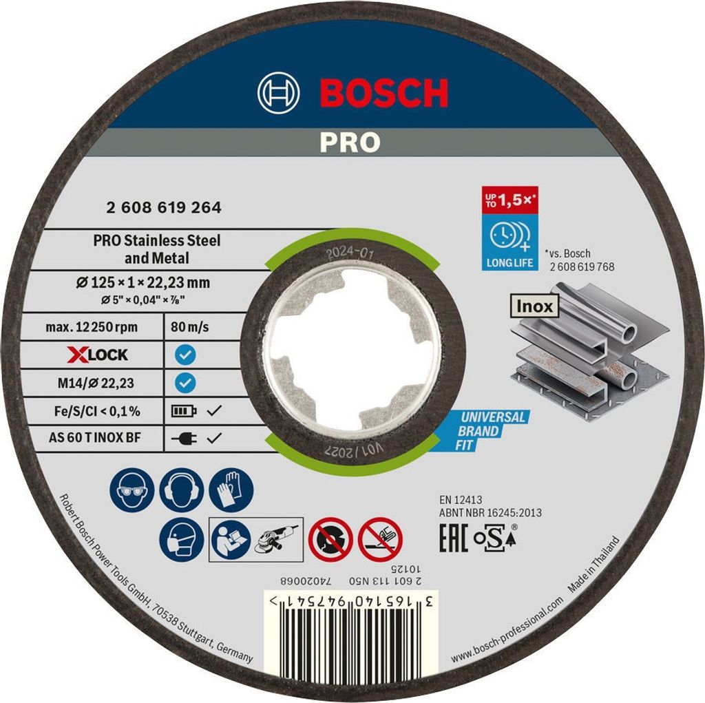 Bosch X-LOCK Expert for Inox and Metal är en högpresterande kapskiva framtagen för exakta och säkra kapningar i metall och rostfritt stål. Den är tillverkad av förstklassig aluminiumoxid och optimerad med specialfyllnadsmedel som minskar värmeutveckling och förhindrar missfärgning av arbetsmaterialet.
