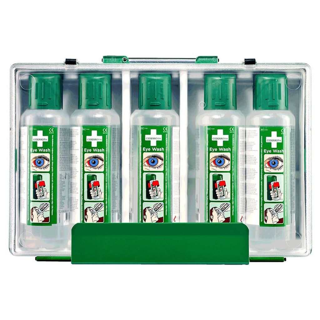 Vägghållare som passar alla Cederroth förbandslådor samt Ögonduschväskan 7255. Gör att Första Hjälpen-lådorna är lätt synliga och tillgängliga. Grönlackerad plåt.
