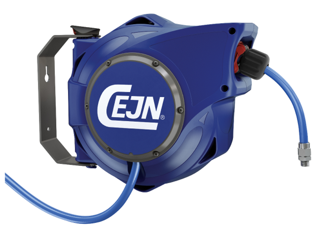 Cejn Slangupprullare för tryckluft. Högt flöde lågt tryckfall. Långsam slanginrullning. Robust konstruktion. Mjuk stoppkula som minimerar fallrisk.