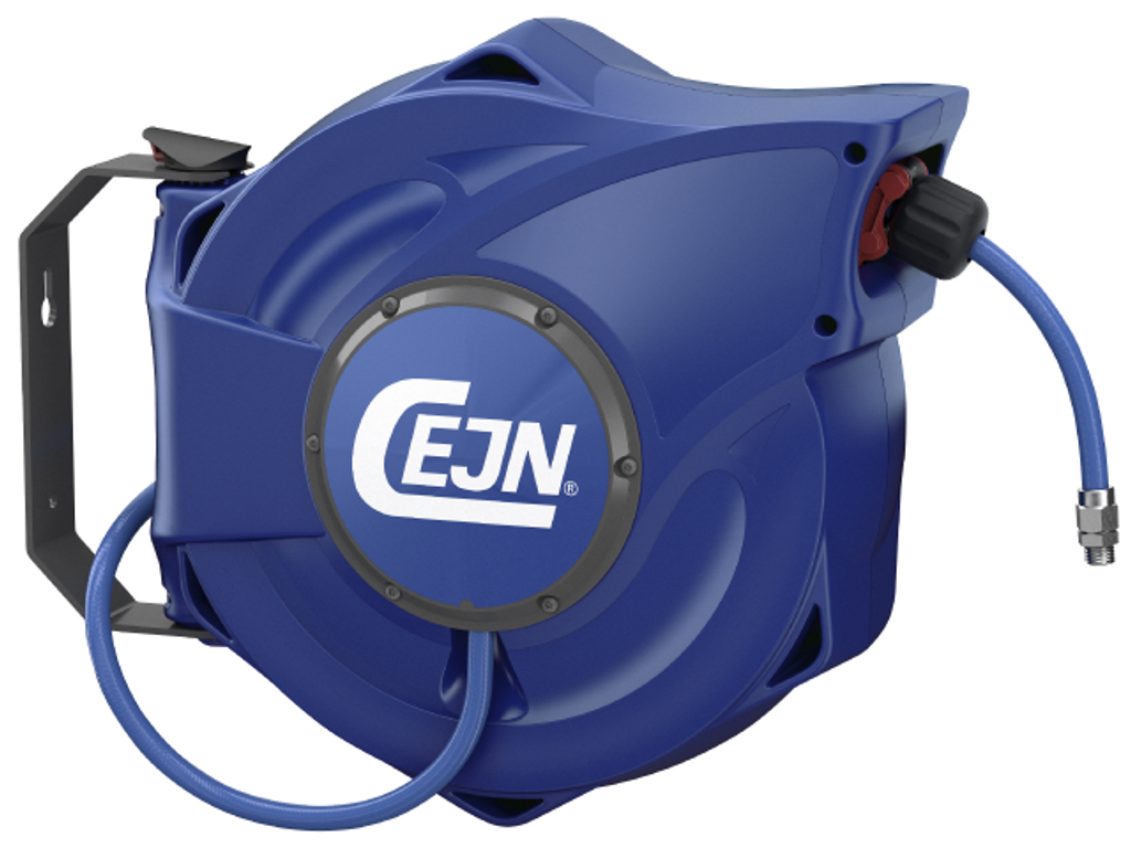 Cejn Slangupprullare för tryckluft. Högt flöde lågt tryckfall. Långsam slanginrullning. Robust konstruktion. Mjuk stoppkula som minimerar fallrisk.