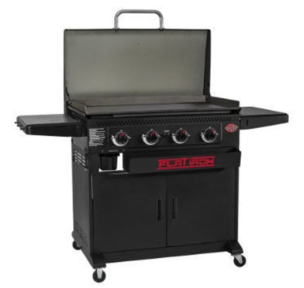 Char-Griller Flat Iron™ Premium Gasolgrill är en kraftfull 4-brännars plancha med hela 50 000 BTU och fyra separata värmezoner – perfekt för att laga flera rätter samtidigt. Med en keramisk belagd ståltopp, smidig tändning, vindskydd och ett stort tillagningsområde på 0,5 m² ger den dig full kontroll vid varje grilltillfälle. Två fällbara sidobord, stängd förvaringsvagn och utdragbar fettbricka förenklar både matlagning och rengöring. Perfekt för allt från frukost till biff – året om.