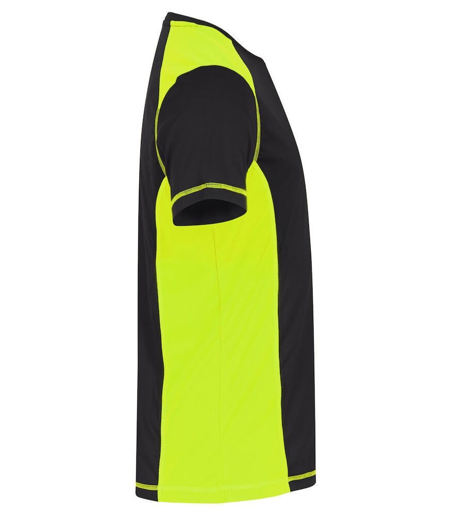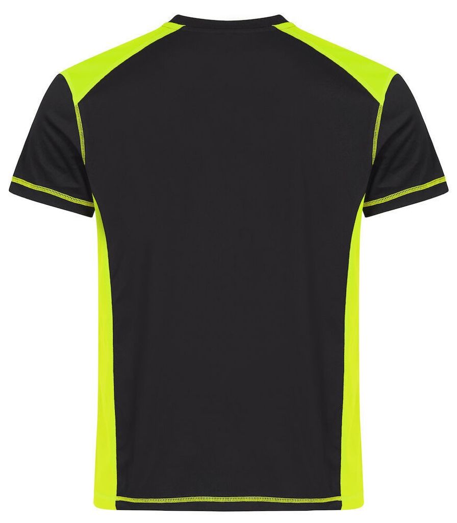 Designen kännetecknas av dess kontrastsömmar som inte bara ger en attraktiv look utan också ökar synligheten. Elastan i kragribben säkerställer att t-shirten behåller sin form och passform även efter flera tvättar. Förstärkt nackband bidrar till ökad hållbarhet och komfort.