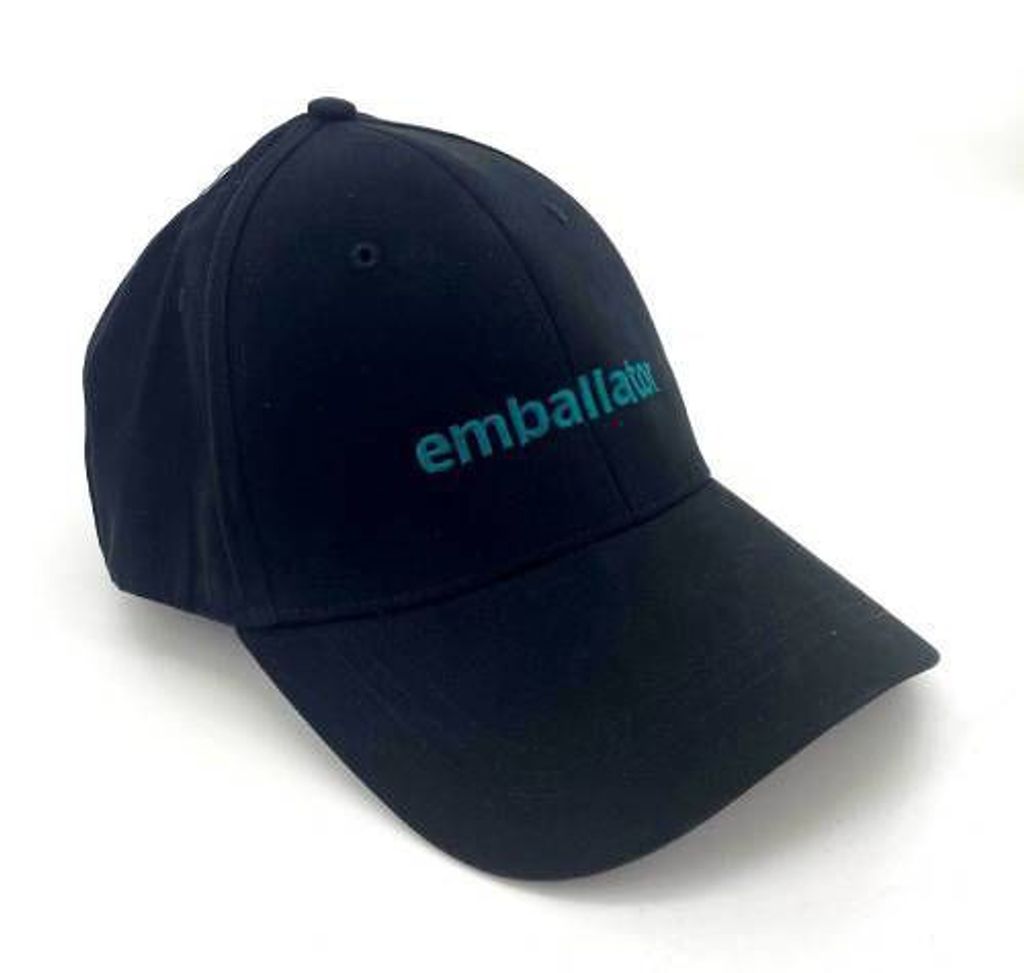 Flexifit-keps i bomullstwill med 'Emballator'-logotyp, perfekt för både vardag och speciella tillfällen.