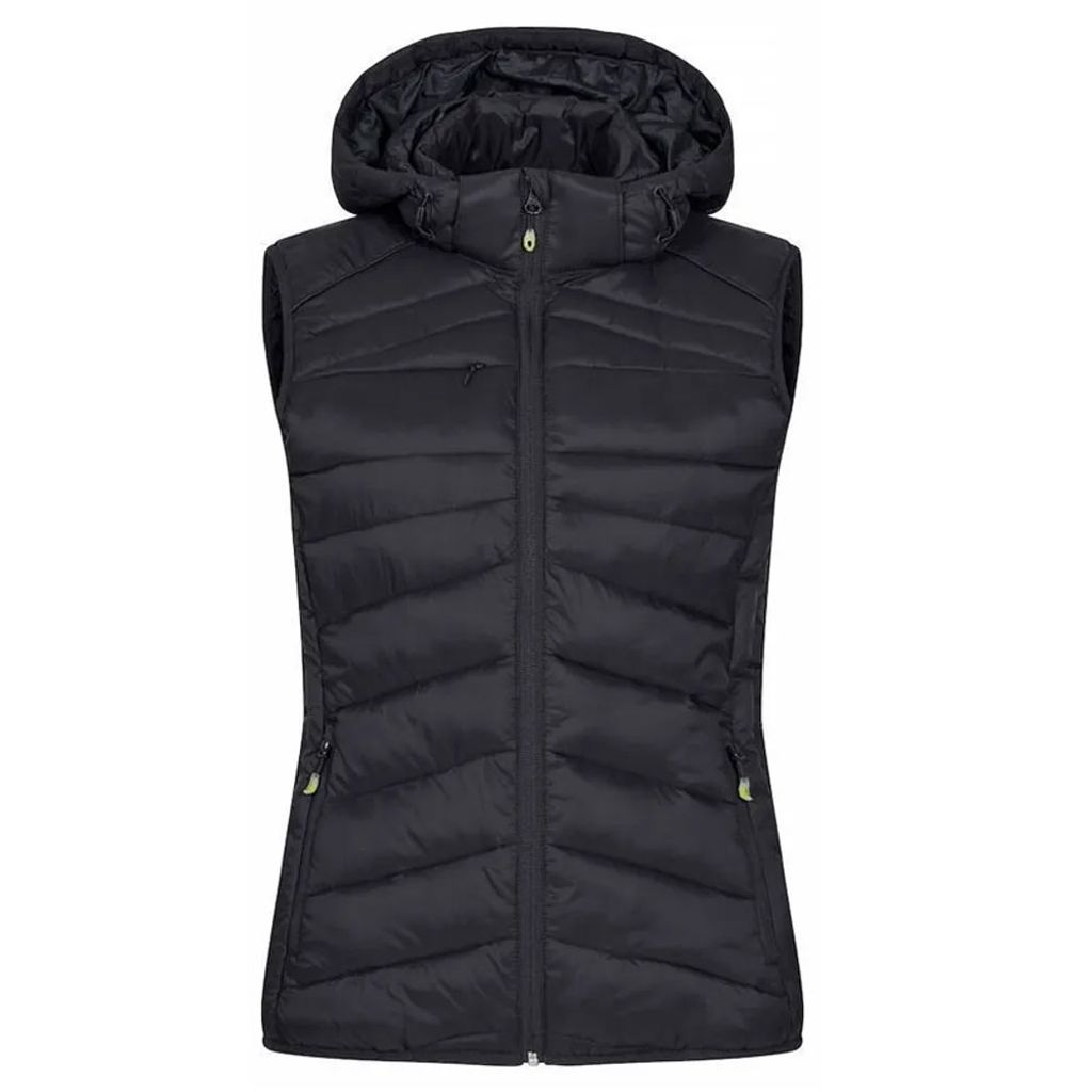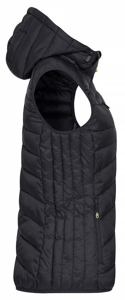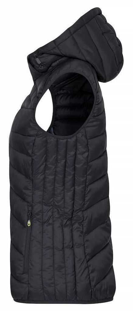 Clique Idaho är en lätt och varm väst med dunliknande vaddering, perfekt för kallare dagar. Tillverkad av 100% återvunnen polyamid och polyester, erbjuder denna väst både komfort och hållbarhet. Den har tre ytterfickor med dragkedjor och två praktiska innerfickor. Dammodellen kommer med en avtagbar huva för extra flexibilitet. Med elastisk kant nedtill och i ärmavslut, samt färgade zippuller och hörlurslösning, är det en praktisk och stilren väst för vardag och fritid.