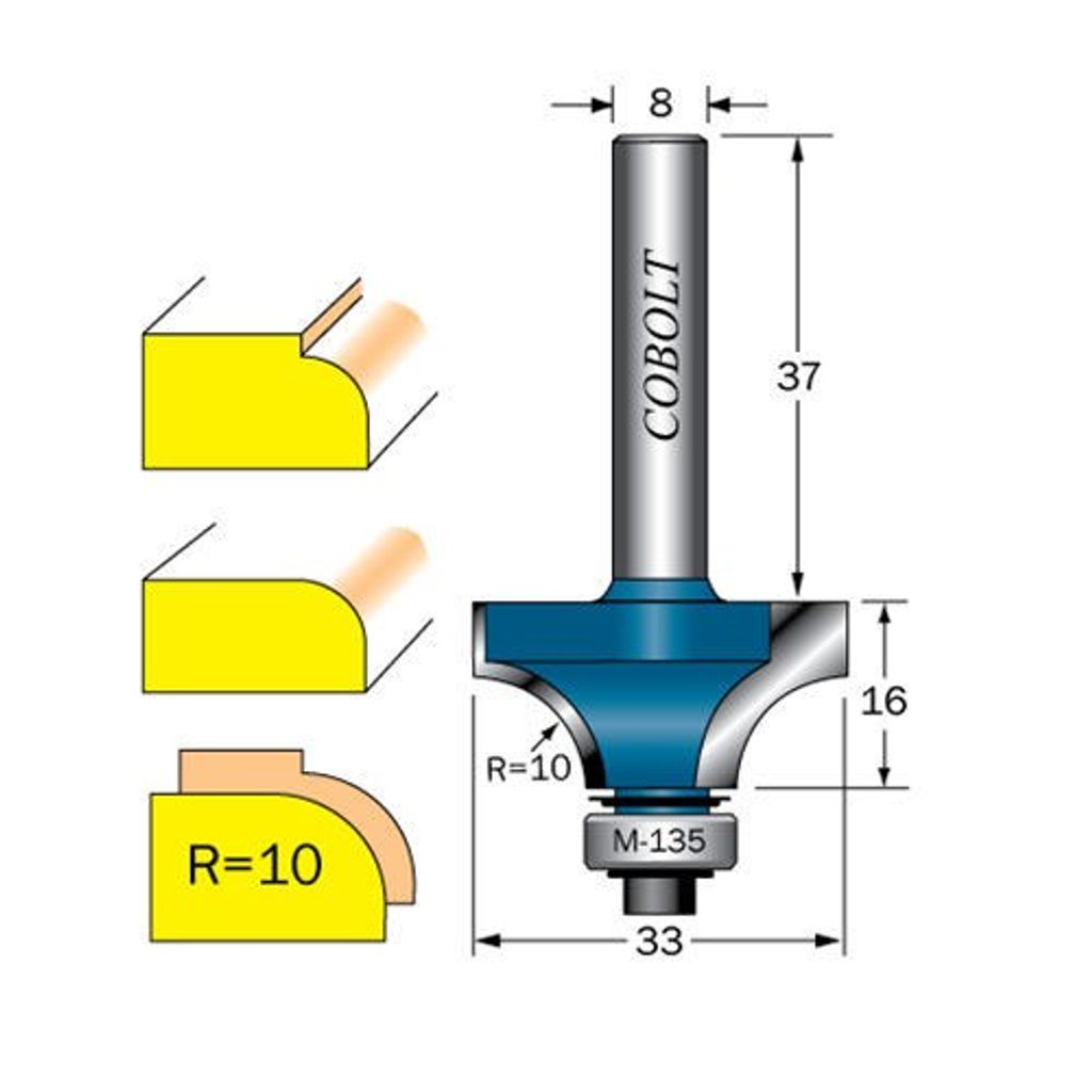 Cobolt Avrundningsfräs R=10 D=33 L=16 S=8