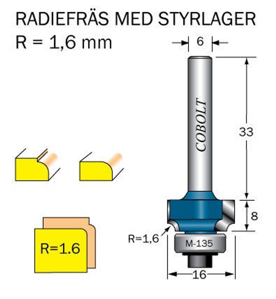 Cobolt Avrundningsfräs R=1.6 D=16,2