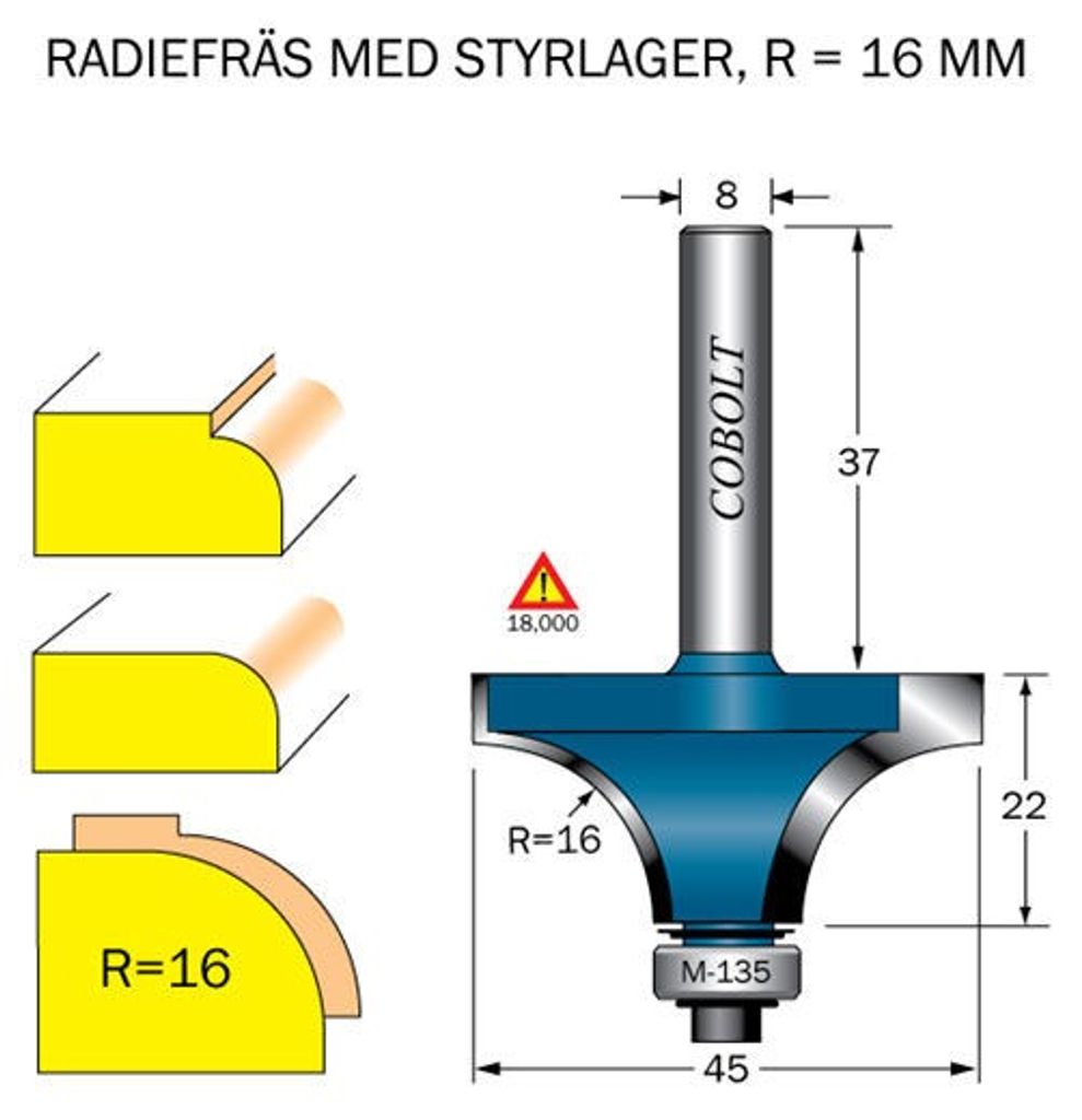 Cobolt Avrundningsfräs R=16 D=45 L=22