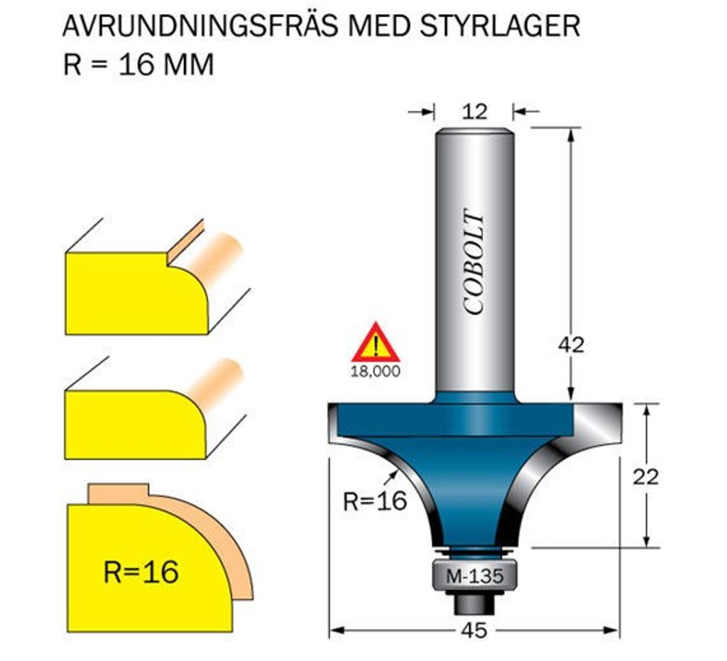 Cobolt Avrundningsfräs R=16 D=45 S=12