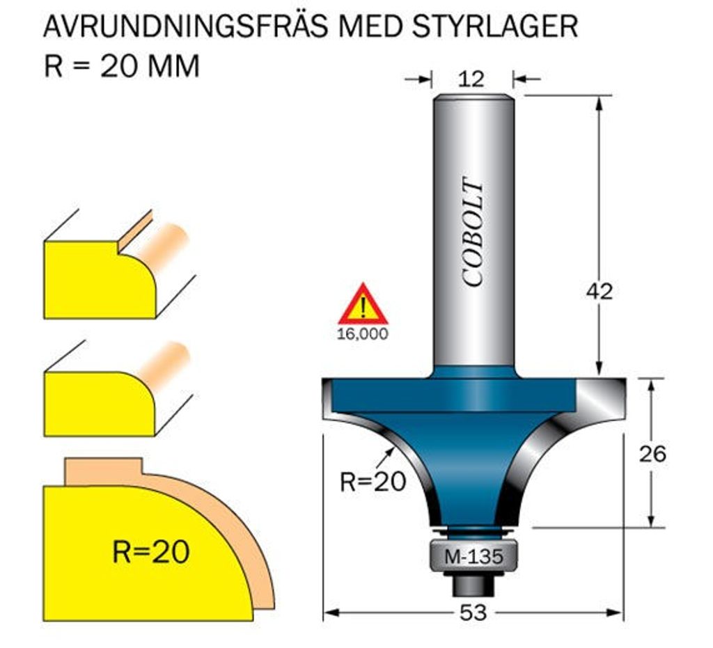 Cobolt Avrundningsfräs R=20 D=53 S=12