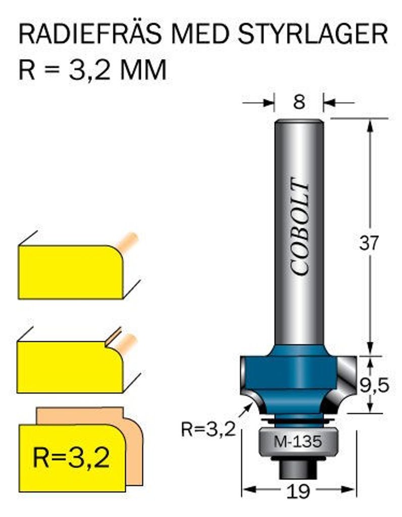 Cobolt Avrundningsfräs R=3.2 D=19 L=95