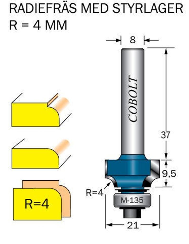 Cobolt Avrundningsfräs R=4 D=21 L=95