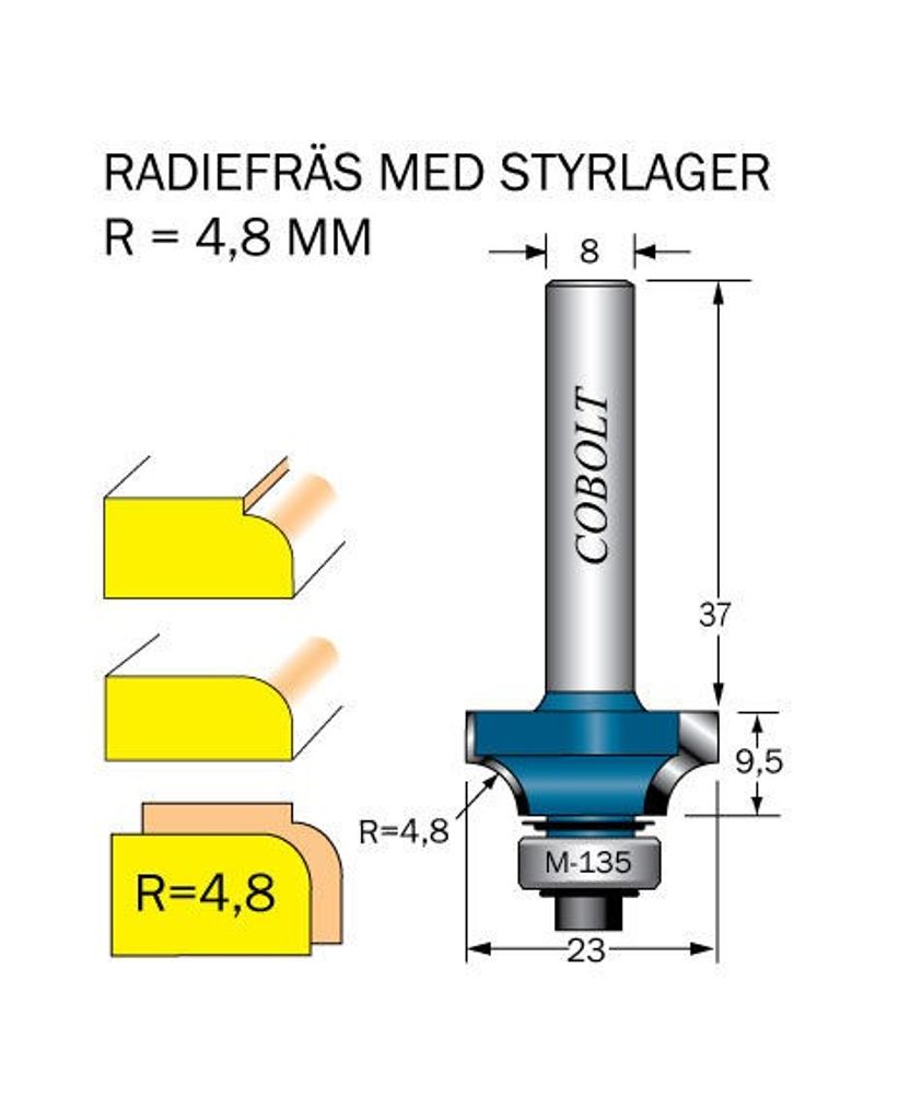 Cobolt Avrundningsfräs R=4.8 D=23 L=95